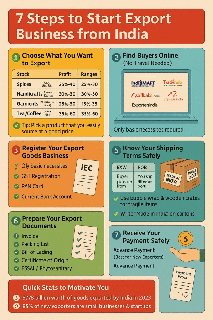 In this simple guide, I’ll show you 7 easy steps to export goods from India — even if you are a complete beginner. You don’t need to be a big company. You don’t need fancy degrees. Even a small shop owner can believe in starting their Business